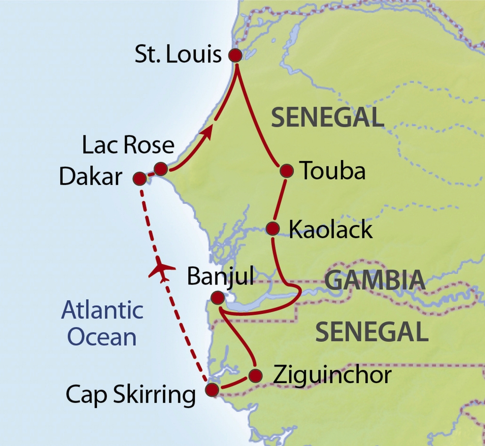 Ankunft und Transfer zum Hotel. Am nächsten Tag Besichtigung von Dakar, eine dynamische Metropole mit einer spannenden zeitgenössischen Kunstszene. Besuch des Museums der Schwarzen Zivilisationen. Am Nachmittag geht es per Fähre auf die geschichtsträchtige Insel Gorée. Die kleine autofreie Insel mit zahlreichen Restaurants und Geschäften ist heute ein beliebter Touristenort.