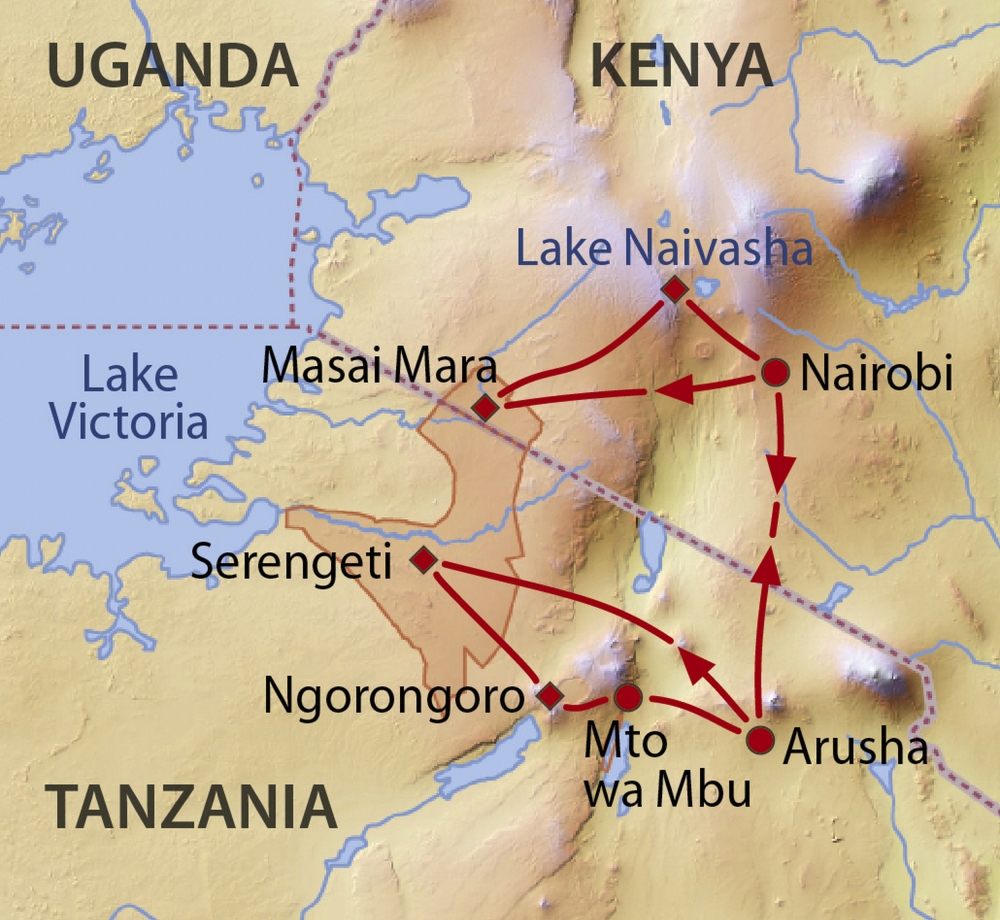 Nach dem Frühstück fahren Sie zurück nach Arusha und weiter nach Nairobi.