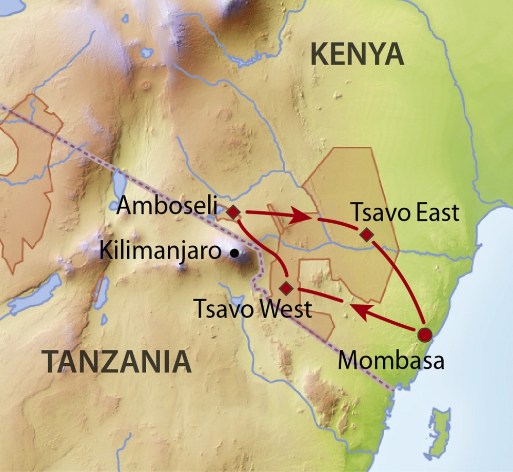 Sie fahren von Mombasa zum Tsavo West Nationalpark, wo Sie unter anderem die "Mzima Springs" mit den dort ansässigen Flusspferden besichtigen.