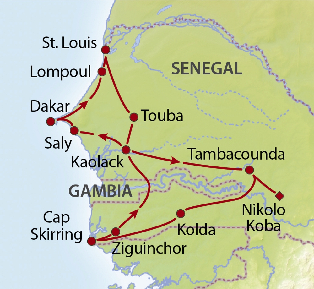 Ankunft in Dakar und Transfer zum Hotel. Am nächsten Tag Stadtrundfahrt durch Dakar mit Besuch kolonialer Viertel, des Präsidentenpalast, der Moschee und der Kathedrale. Anschliessend Fährüberfahrt zur autofreien Insel Gorée mit dem hübschen Städtchen und dem historischen Sklavenhaus.