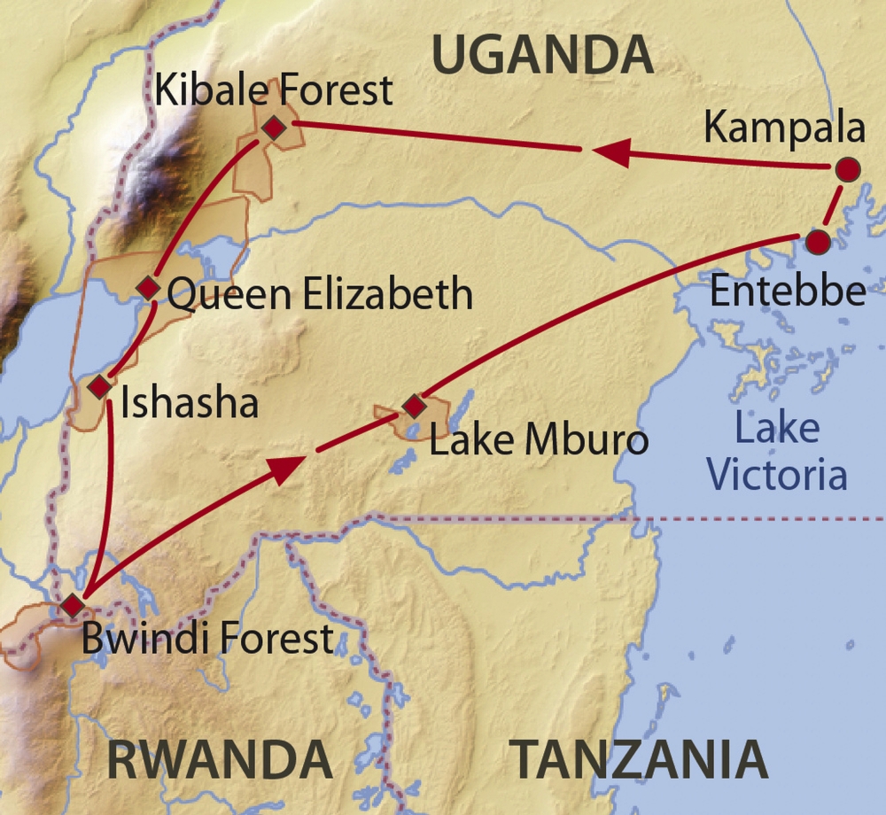 Nach dem Frühstück letzte Pirschfahrt. Anschliessend Rückfahrt nach Entebbe.