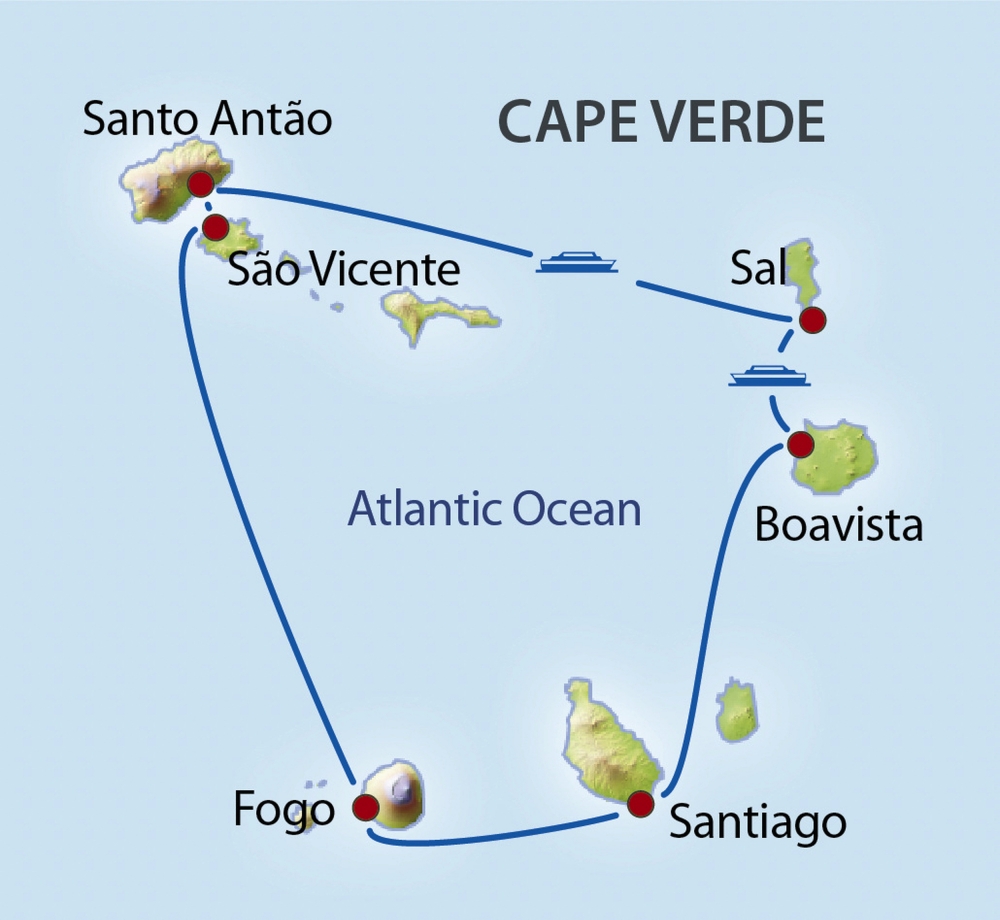 Frühmorgens erreichen Sie Praia, die Hauptstadt der Kapverden. Diese Insel gilt als afrikanischste Insel dieses Archipels. Spätabends Weiterfahrt nach Fogo.