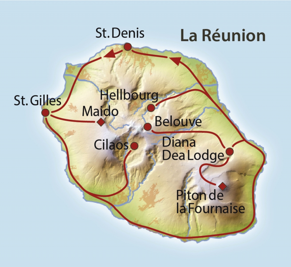 Nach dem Frühstück Fahrt nach St. Denis. Ein Spaziergang durch die Stadt lohnt sich. Verlängerung oder Rückgabe des Mietwagens am Flughafen.