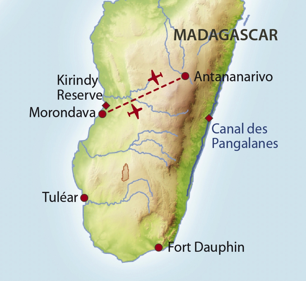 Fahrt zum Flughafen. Rückflug nach Antananarivo oder Fortsetzung Ihrer Rundreise.
