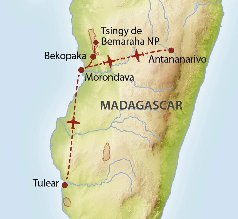 Transfer zum Flughafen, Rückflug nach Antananarivo oder Fortsetzung Ihrer Rundreise.