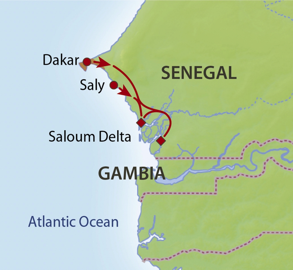Fahrt von Dakar nach Mbour, einem berühmten Fischerhafen, um den lokalen Fischern bei der Trocknung und Räucherung zuzusehen. Weiter geht es nach Toubacouta, einer Ortschaft im Saloum Delta. Die Einheimischen leben hier vor allem von der Landwirtschaft und dem Fischfang. Dank der grossen Mangrovenbestände gehört es mit seiner unglaublichen Biodiversität zum Weltkulturerbe.
