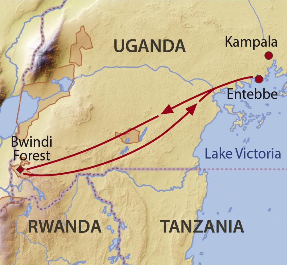 Anreise mit dem Flugzeug aus Enebbe zum Bwindi Impenetrable Nationalpark, dem Ausgangspunkt für den Besuch der vom Aussterben bedrohten Berggorillas.